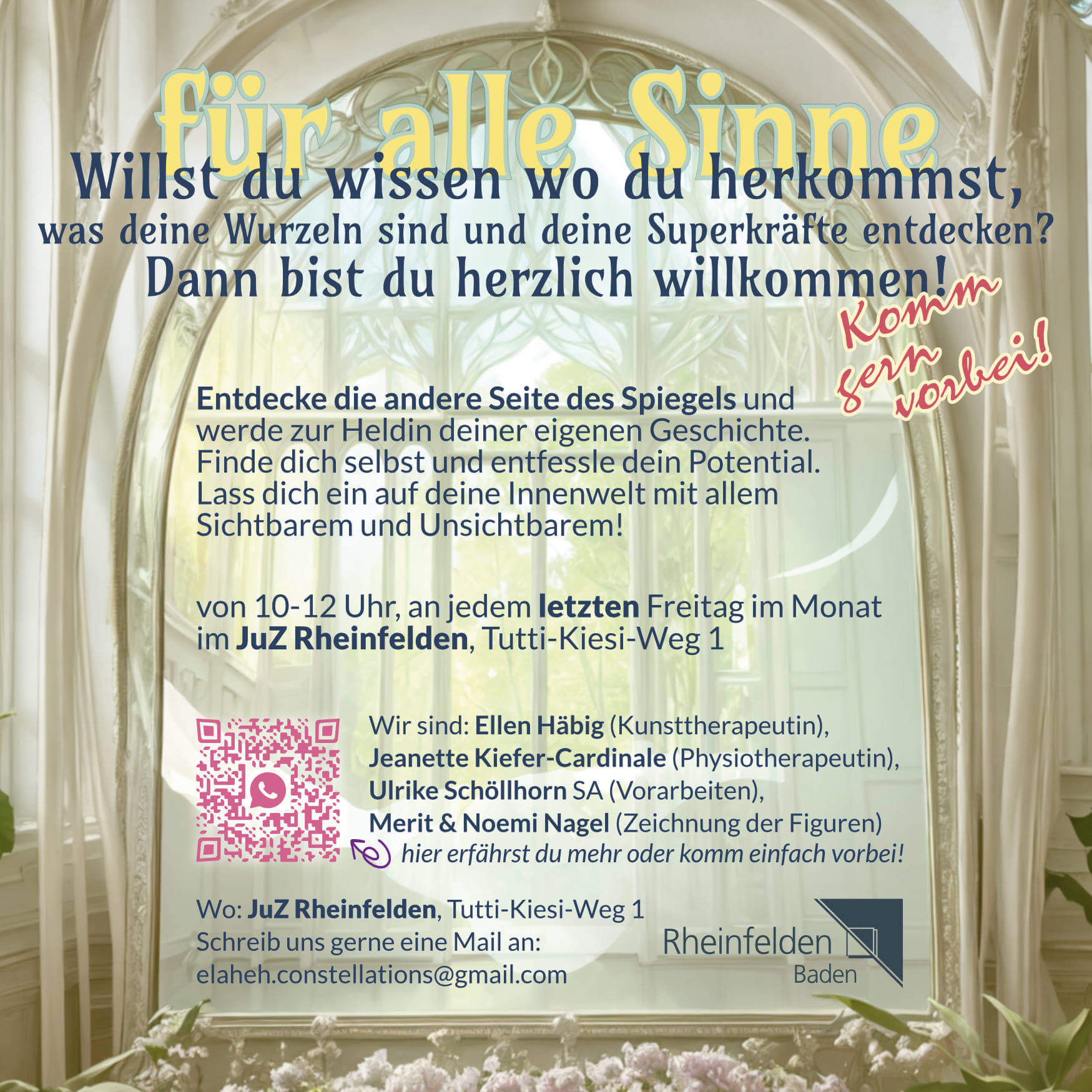 Aktivitäten: Spirituelle Gruppenarbeit, Selbstbewusstseinsübungen, Kreative Workshops, Austausch und Unterstützung